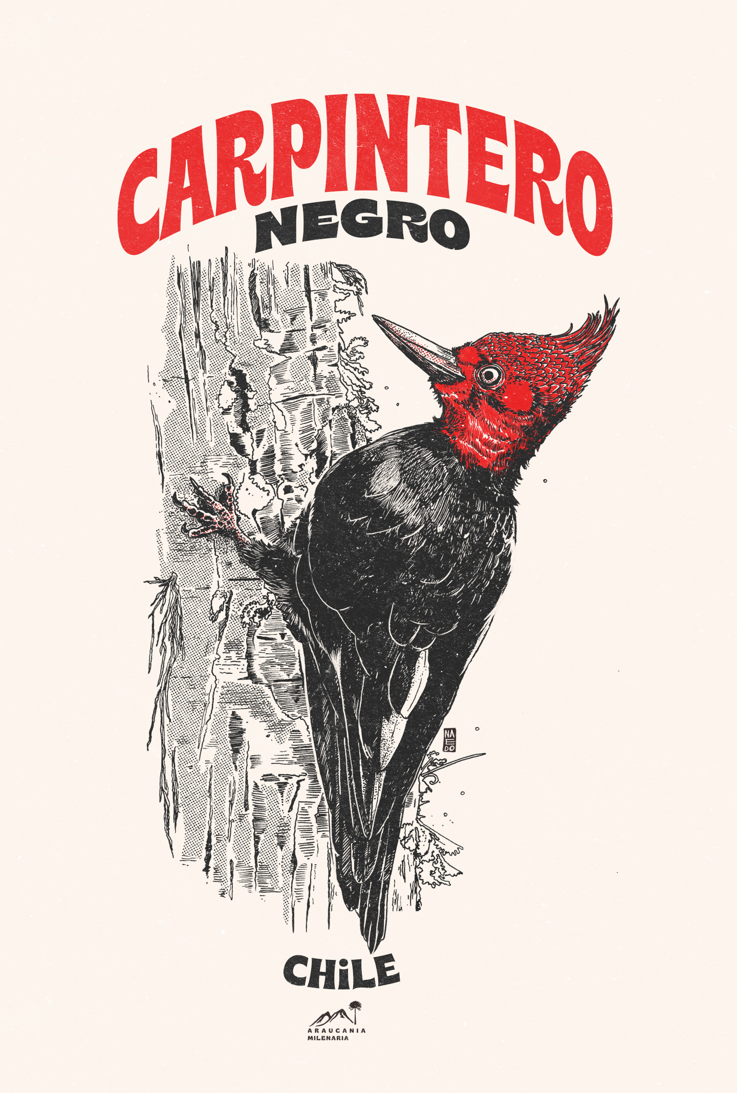 Ilustración para Serigrafía a dos colores para el Carpintero Negro
