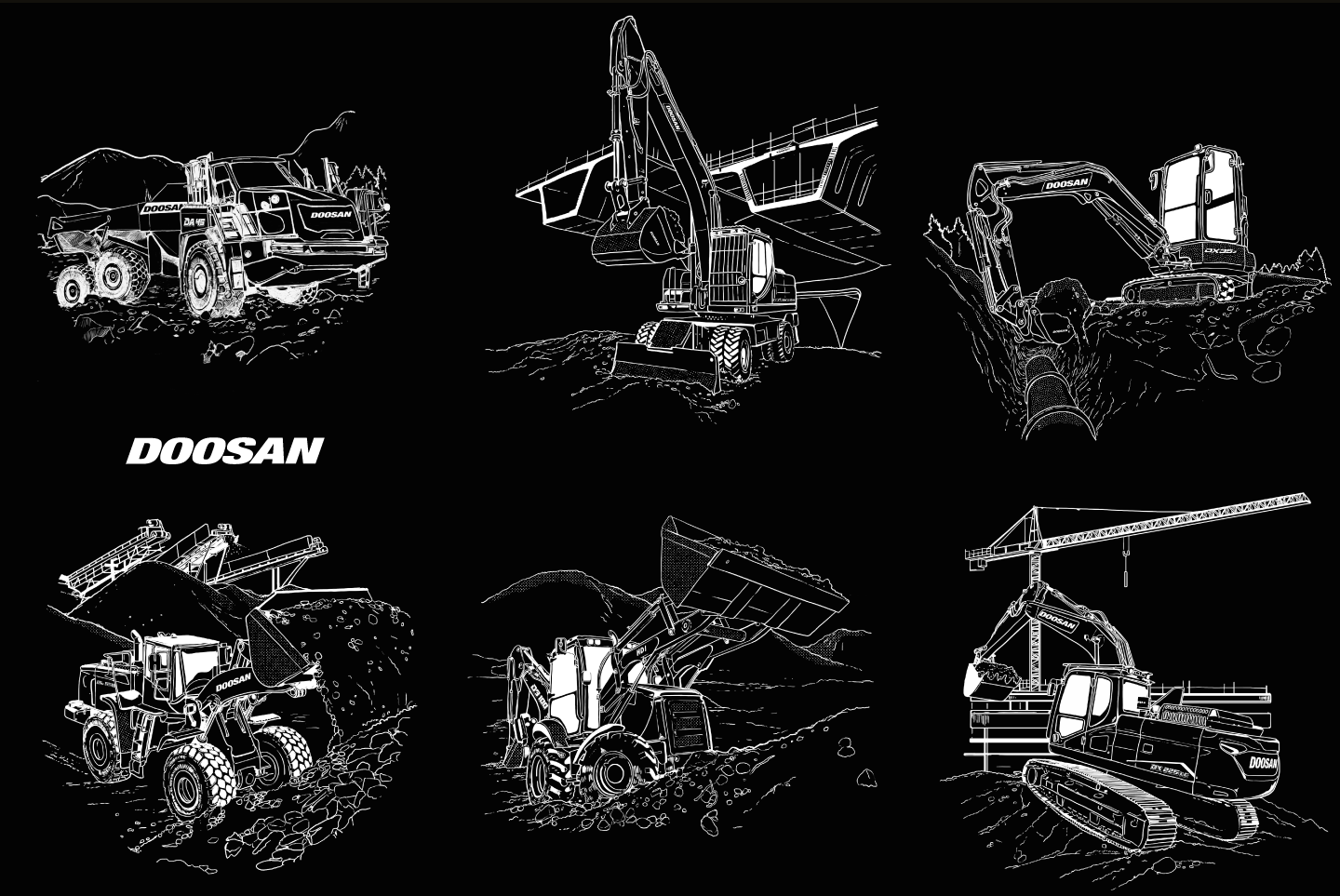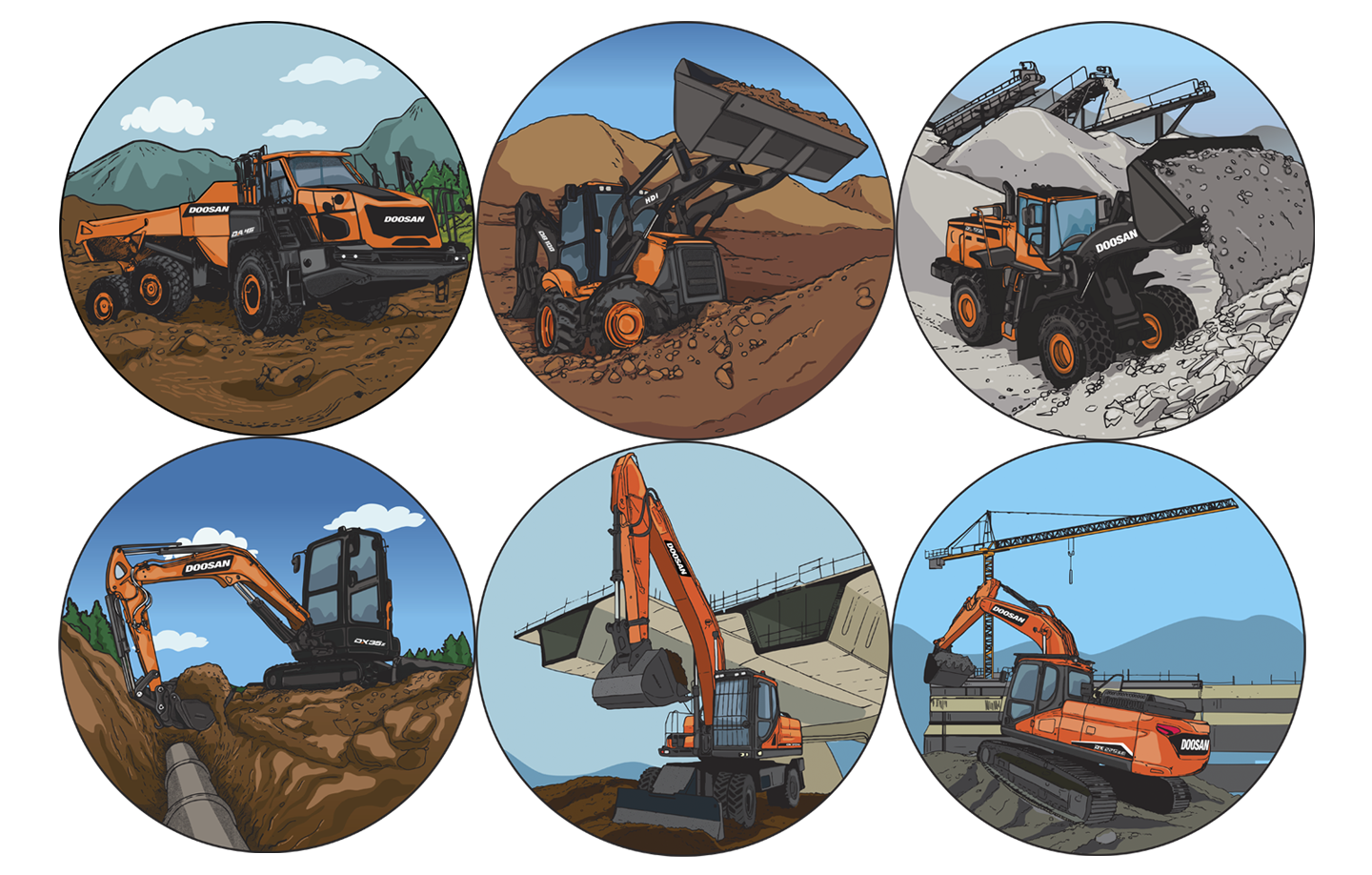 Ilustraciones para Maquinaria Hyundai Doosan ahora Develon Chile.