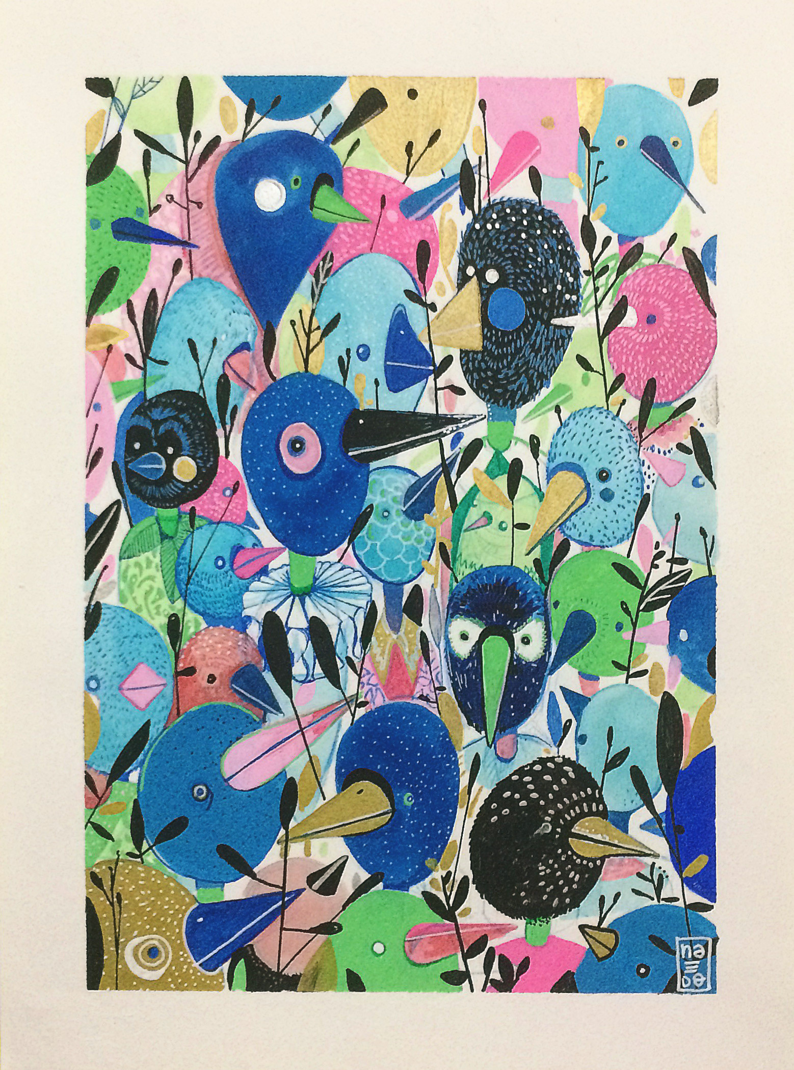 Personal work. Watercolor techniques, posca, Prismacolor markers. Canson Paper